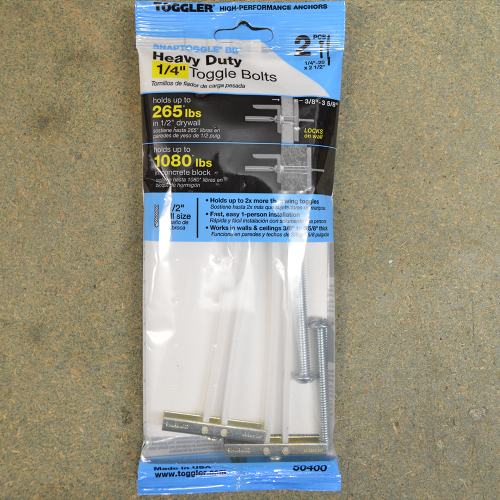 These Toggler fixings are designed to hold up to 265*lbs in 1/2″ drywall and also is able to hold up to 1080*lbs in a concrete block. It is capable of holding up to 2x more than a wing fixing.